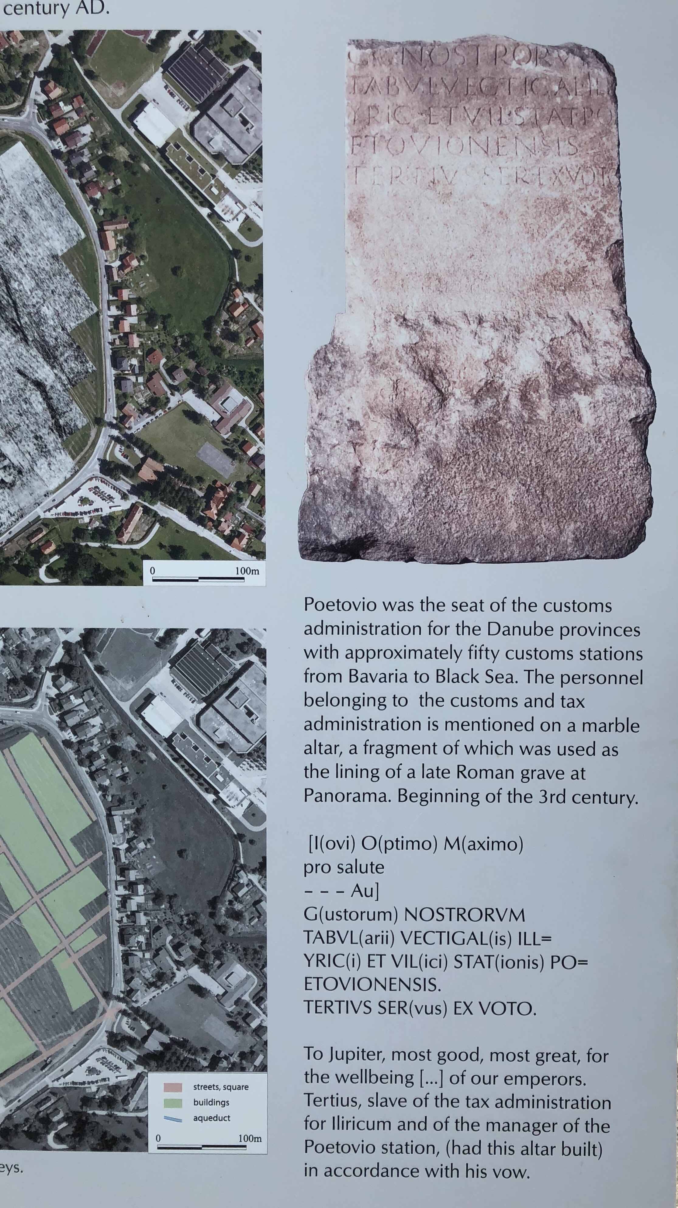 Le long de la route impériale Aquileia-Savaria dans la partie est de l'ancien Poetovio, un important quartier d'artisans avec de grands bâtiments résidentiels, des magasins, des ateliers, des étables et des cours a été découvert et étudié.